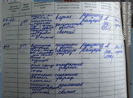 Наличие записей в бракеражном журнале готовых блюд