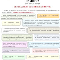 Это приятное время для школьников и время особой заботы для взрослых. Чтобы сохранить здоровье детей в осенние каникулы, обсудите с ними основные правила безопасного поведения. Чтобы избежать непредвиденных ситуаций, убедительно просим позаботиться о безопасности детей. Помните, что в это время значительно ... Читать дальше »