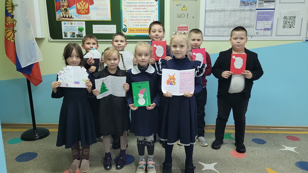 В МБОУ "Чуваштимяшская ООШ" Ибресинского муниципального округа Чувашской Республики в рамках патриотической акции «Новогодняя открытка солдату СВО» учащиеся начальных классов изготовили новогодние открытки и письма для участников СВО с поздравлениями и пожеланиями крепкого здоровья и скорейшего возвращения домой.