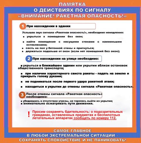 Услышав предупредительный сигнал «РАКЕТНАЯ ОПАСНОСТЬ!» действовать необходимо быстро и без паники.